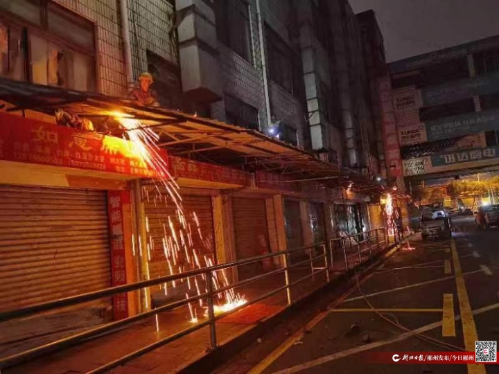 北湖市场是郴州市最早的商城之一,地处中心城区,人流量较大,市场沿街商铺存在违规搭建的雨棚、铁栅栏等现象,不仅影响了城市规划和市容市貌,还存在一定的安全隐患。北湖街道快速反应,迅速组织“睡前体检队”开展零点“铁锤行动”,及时消除安全隐患。